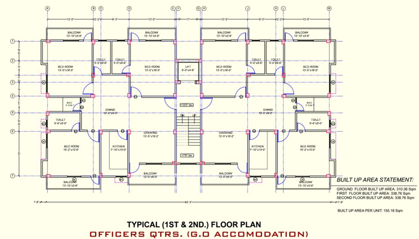 | Senior Officers qtrs (G.O) | 310.36 | 338.76 | 338.76 | 987.88 |